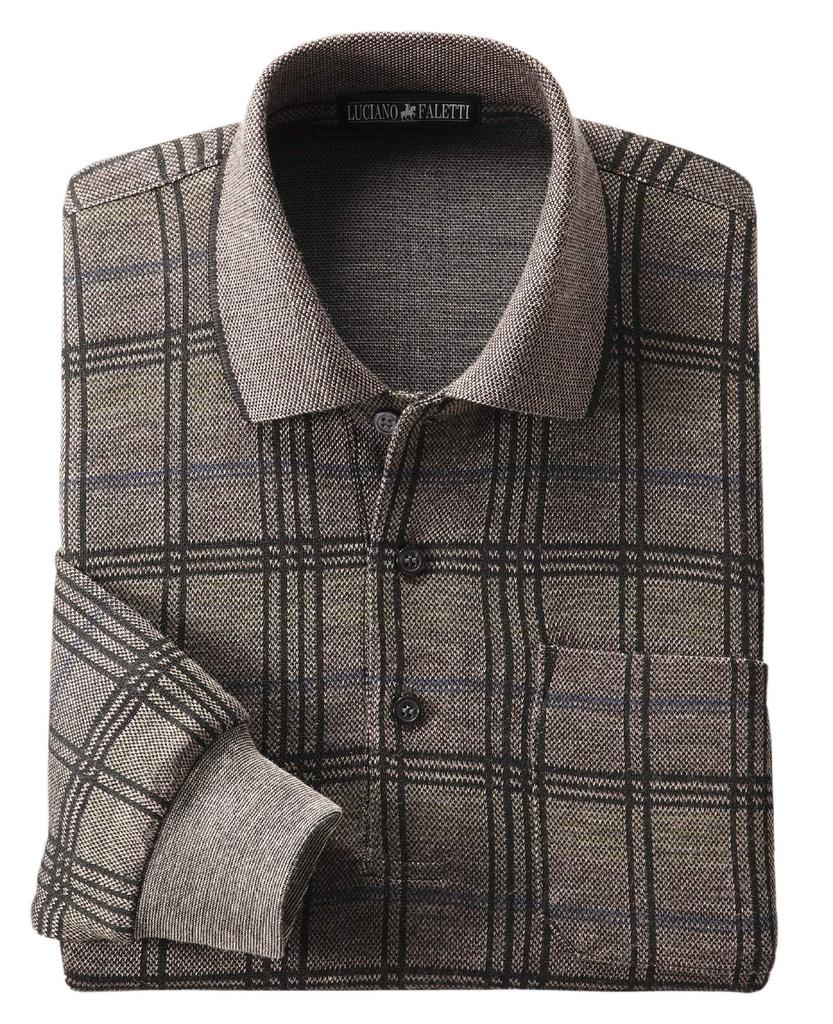 Polo Größe Lang Wolle Hergestellt in Kariert Stretch Braun [Little Island] Herrenhemd, L, Braun, Ärmel, Jacquard, Mischung, Japan, Wolle, Muster, Jacquard,