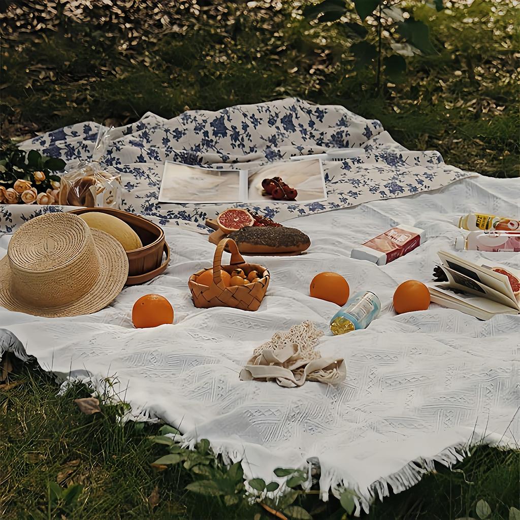 Picknick Picknickdecke für Picknick Kompakt Einfach zu Klaviertuchdecke, 1-4 Personen, Matte, Nordisch, Fransen, Spitze, Stilvoll, Ausflug, Outdoor, Leicht,