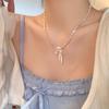 Koreanische Titanstahl-Perlenkette mit Zirkonanhänger - Luxus-Choker-Kette