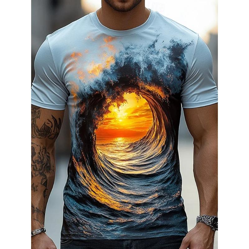 Sommer Täglich Lässig Herren Locker sitzendes Top 3D Wellenmuster Herren T-Shirt Outdoor Seaside Herren Modisches Kurzarmhemd