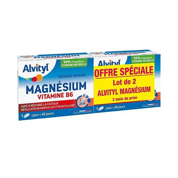 Alvityl Magnésium Marin Vitamine B6 Libération prolongée Réduction de la fatigue dès 12 ans 2x45 comprimés Cure de 3 mois