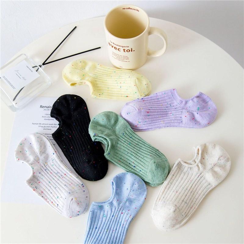 Damen Sommer Dünner Stil Reine Baumwolle Flacher Bund Rutschfest Rutschfeste Ferse Unsichtbar Kurze Bootssocken