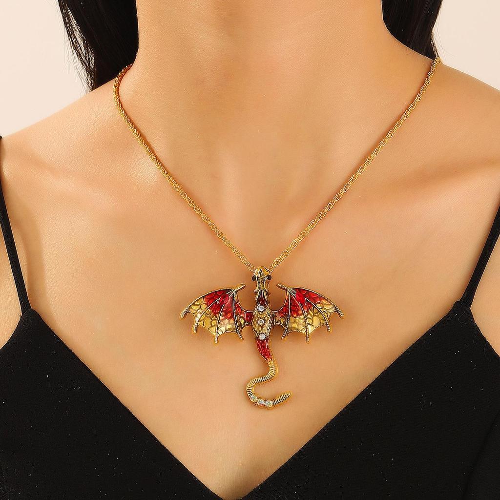 Retro Drip Cartoon Drachen Anhänger Halskette mit Diamanten - Europäischer & Amerikanischer Disco Hip Hop Stil