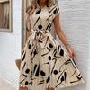 2025 Geometrischer Druck Midilanges Sommerkleid - Plissiert Europäischer & Amerikanischer Stil Damenbekleidung