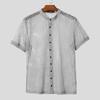 INCERUN Herren Kurzarm Knöpfe Oben Mesh Durchsichtig Strandhemden Tops