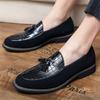 Neue Herren Spitzschuhe Schwarz Braun Quasten Slipper Flats Kleid Patchwork Loafer Homecoming Festzug Schuhe Zapatos Hombre