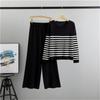 Frühling Lässiger Modeanzug Modisches Gestreiftes Strickoberteil Weit geschnittene Hose Zweiteiliges Set für Damen