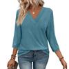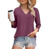 Damen V-Ausschnitt 7-Zoll Ärmel Oberteil für Frühling Lässige Damenbekleidung Taillenknoten Strick-T-Shirt