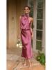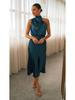 2023 Sommer Ärmelloses Neckholder Satin Kleid – Elegante Einfarbige Damenbekleidung