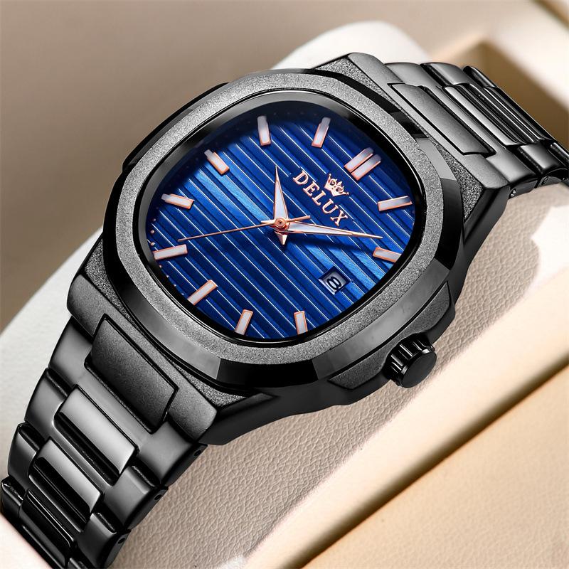 Luxuriöses goldenes Edelstahlarmband Mode blaues Zifferblatt Quarz Herrenuhr Wasserdicht Leuchtend Relogio Masculino