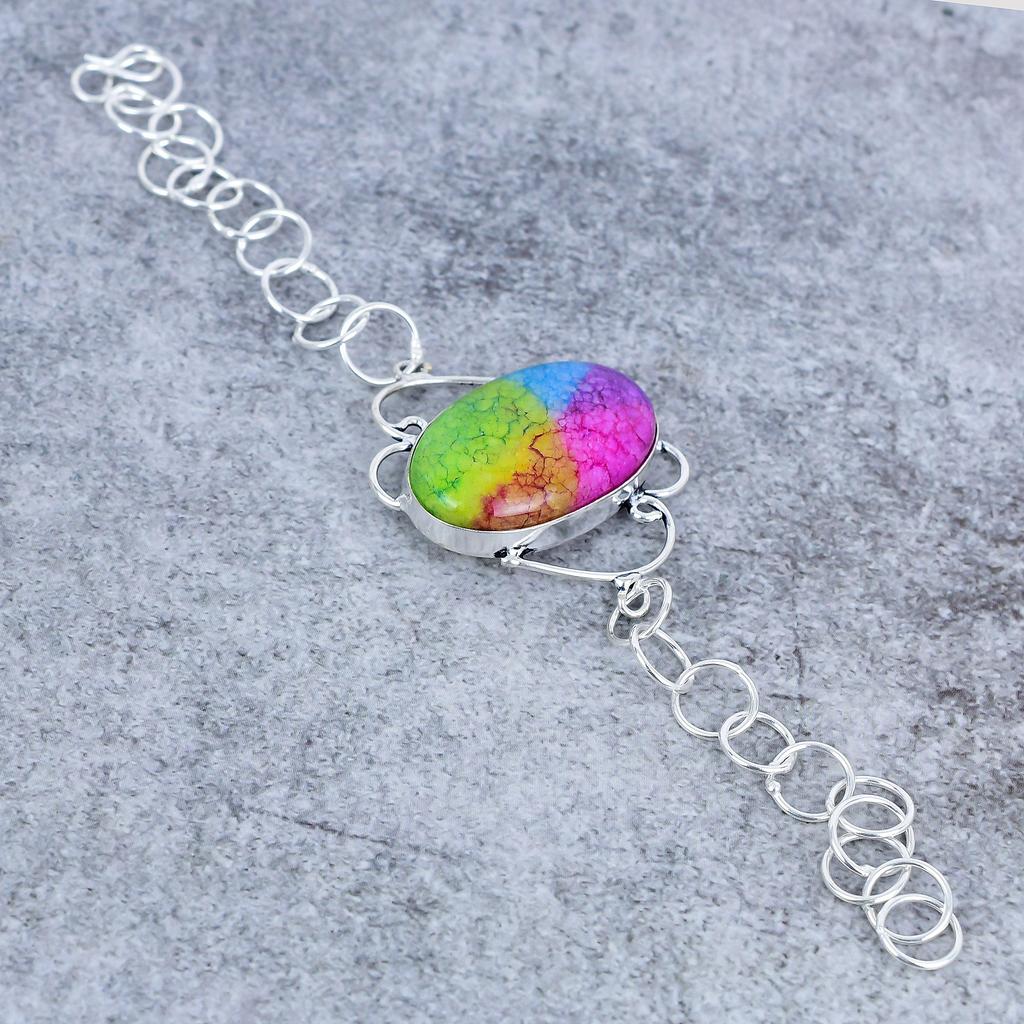 Rainbow Solar Quartz Gemstone Handmade 925 Sterling Silver Bracelet 7-8" M-2714