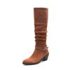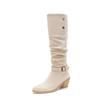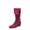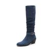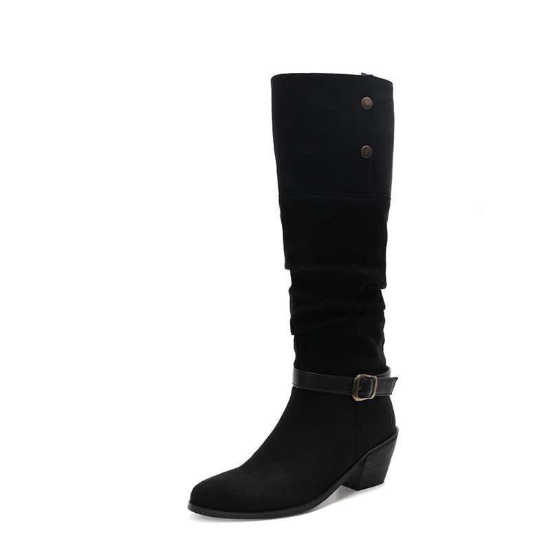 Veloursleder Damen Kniehohe Stiefel Runde Zehenpartie Blockabsätze 6,5cm Zum Hineinschlüpfen Gürtelschnalle Nieten Übergröße 42 43 Dating Bota