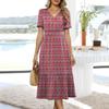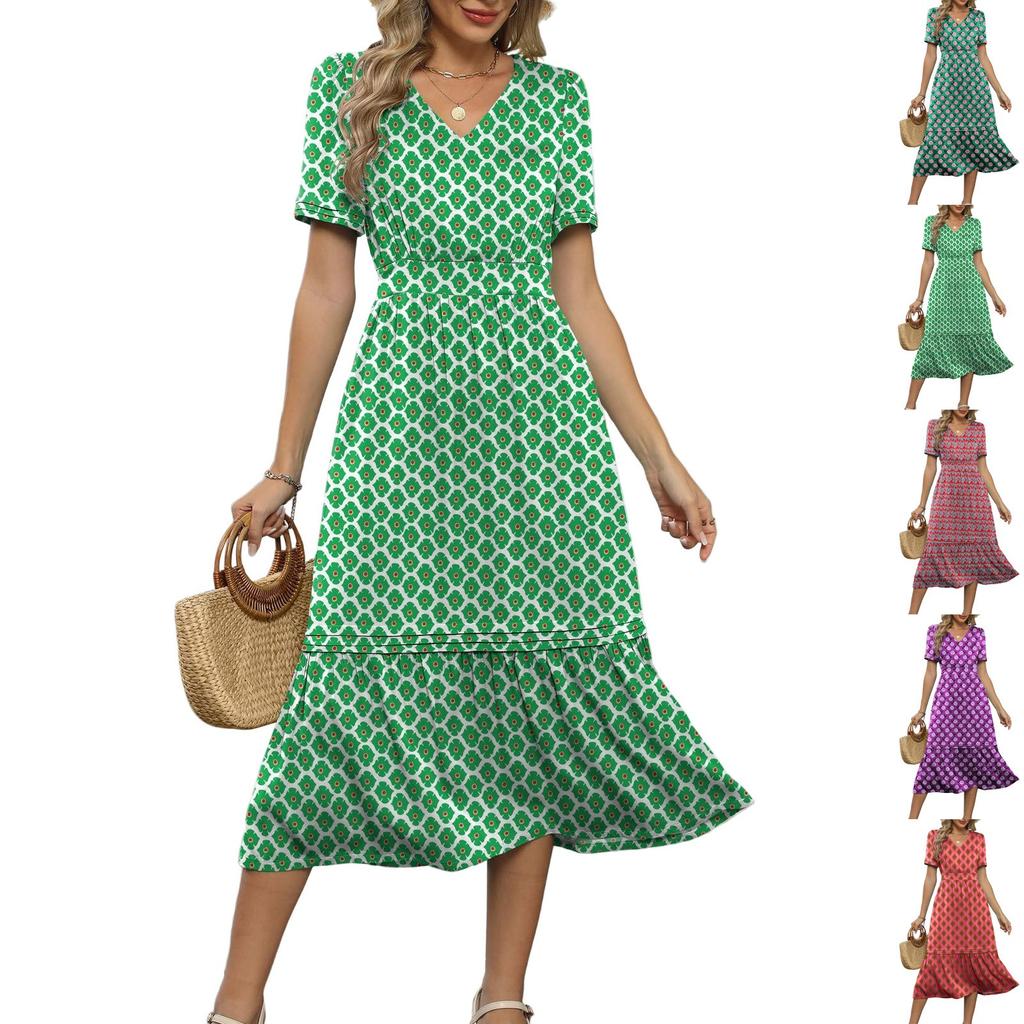 Damen Sommer Casual Fashion Bedrucktes Kurzarmkleid mit V-Ausschnitt und Tasche
