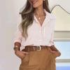 Damen Gestreiftes Button-Down-Hemd Hemdbluse Langarm Freizeitbluse mit Tasche