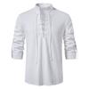 Herren Sommer Baumwollpullover Hippie Lässig Strand Stehkragen Hemd Mit Gürtel Langarm Strandtop