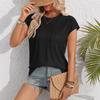 Ladies Summer Short Sleeve O Neck Solid Color Single Pocket Breathable Pullover T Shirt Top