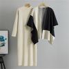 Damenanzug für Herbst und Winter Neues Produkt Kontrastierendes Cape Schal Halbochgeschlossenes Strickkleid Zweiteiliges Set