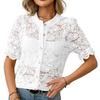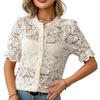 Damen Sommer Kurzarm O-Ausschnitt Spitze Hohl Atmungsaktiv Knopfhemd Top