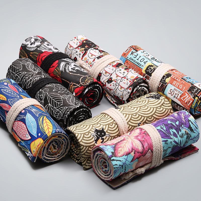 Handmade canvas pen curtain hole large capacity roll pencil case boys and girls color lead sketch stationery box