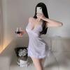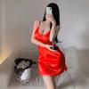 Sexy Damen Durchsichtiges Nachthemd Satin Straps-Shorty Nachtkleid Dünne Spitze Schlitz Schleife Weiblich Exotisches Nachthemd Nachtwäsche