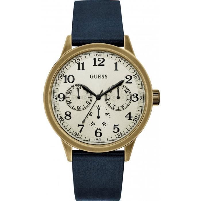 Montre - Guess - OEB 46mm - Acier inoxydable - Cuir véritable bleu - Résistance 5 ATM