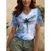 Damen T-Shirt V-Ausschnitt Farbverlauf Libellenmuster Druck Mode Lässig Kurzarm Damenbekleidung