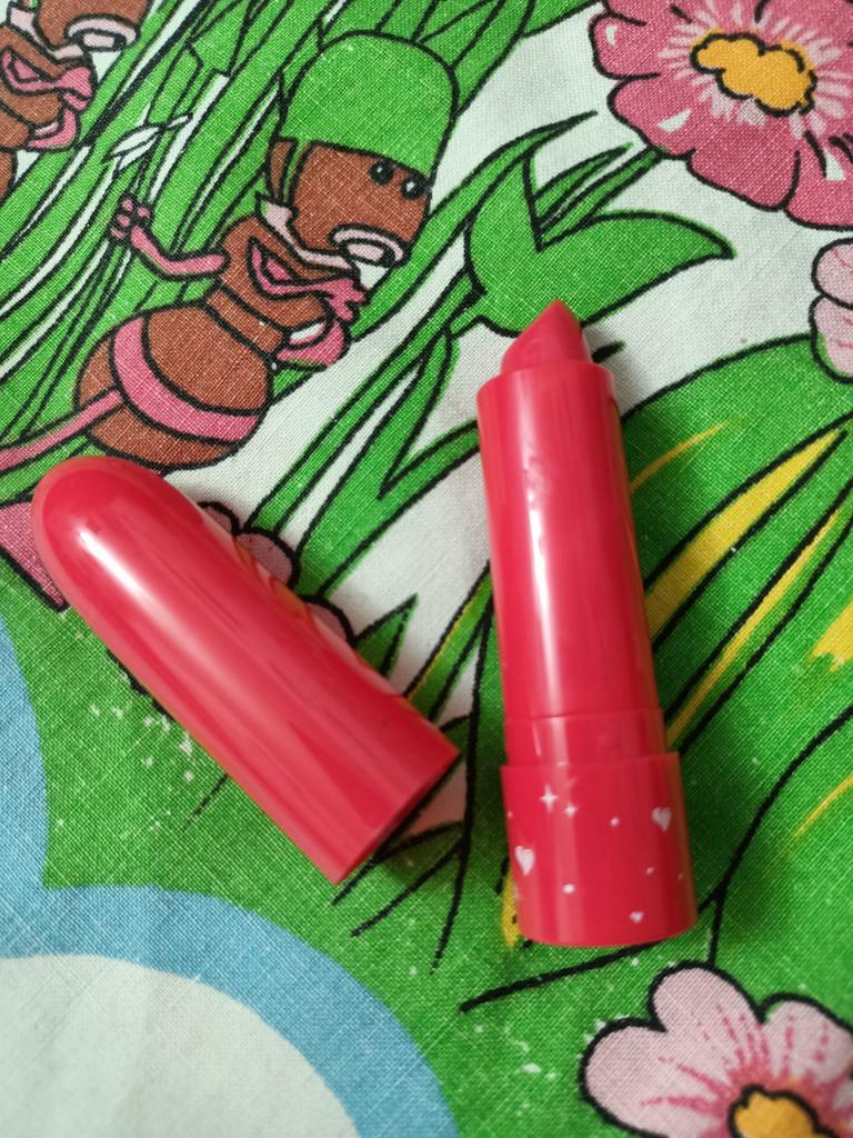 Lassen Sie sich nicht von der Farbe auf dem Bild täuschen, sie ist kirschrot und nicht rosa. Lässt sich angenehm auf die Lippen auftragen. Der Duft ist auch gut.