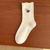 Black Ear-trimmed Socks for Girls, Cute Cartoon Embroidered Lace, School Style Stockings, Ideas, Gauze Labels, Pile Socks