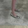 Schafslederversion~ Koreanische Version von Weichleder silberne Schweinsfüße Zehentrenner Damenschuhe leichter Ausschnitt Einzelne Schuhe Damen Flachboden Frenc