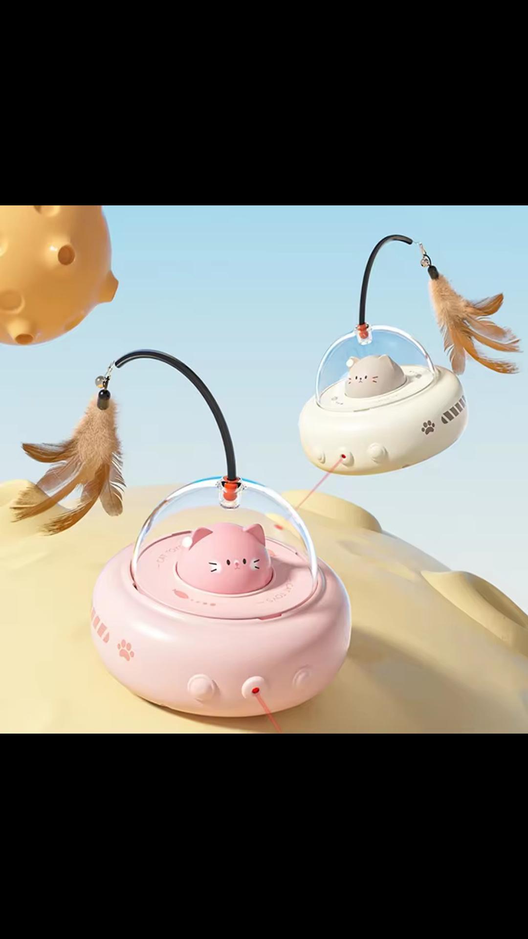 Intelligentes Teaser-Katzenspielzeug Elektrischer UFO-Katzen-Teaser-Stab mit Glocke Trainings-Haustierspielzeug Austauschbare Feder Interaktive Katzenartikel