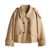 Khaki Trenchcoat Damen Zweireihige Jacke Frau Stehkragen Langarm Tasche Herbst Lässig Locker Oberbekleidung Dame