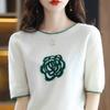 Sommer Neues Damen Rundhals Strick T-Shirt Locker Kurzarm Pullover Halber Ärmel