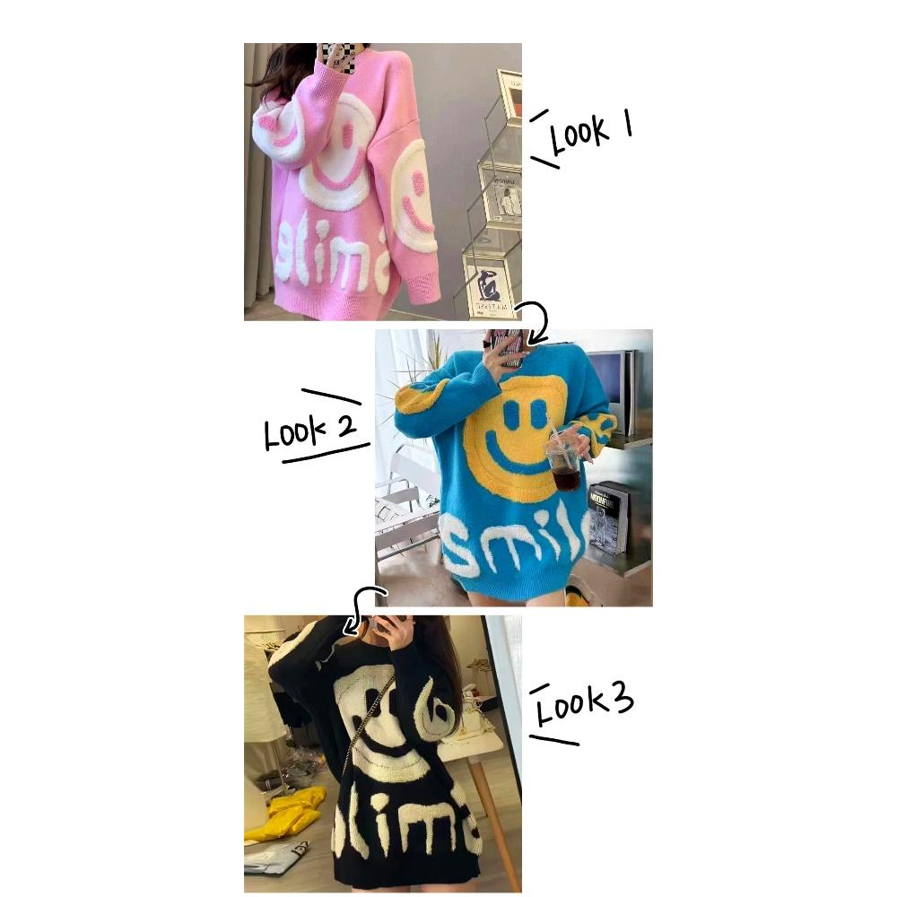 Japanischer Retro Dreidimensionaler Smiley Lockerer Pullover Damen 2025 Herbst- und Winterkleidung Fauler Weicher Wachsartiger Strickpullover auf Kleidung