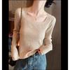 Damen Dünner Strickpullover Herbst Oberteil mit Eckigem Ausschnitt Undercover Kurzer Slim-Pullover
