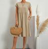 Übergröße Baumwolle Leinen Kleid für Damen Sommer Casual Splicing Taschen Kleider Weiblich Kurzarm Locker Midi Kleider