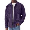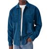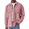 Herren Gestreiftes Kordhemd Lässig Locker Knopf Revers Tasche Langarm