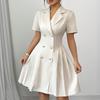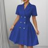 Damen V-Ausschnitt Mode Einfarbig Zweireihig Taille Kurzarm Kleid