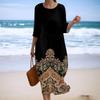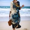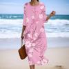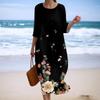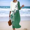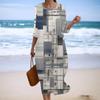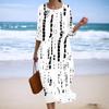 Damen Modisches Bedrucktes Rundhals Siebenviertelärmel Lockeres Kleid