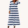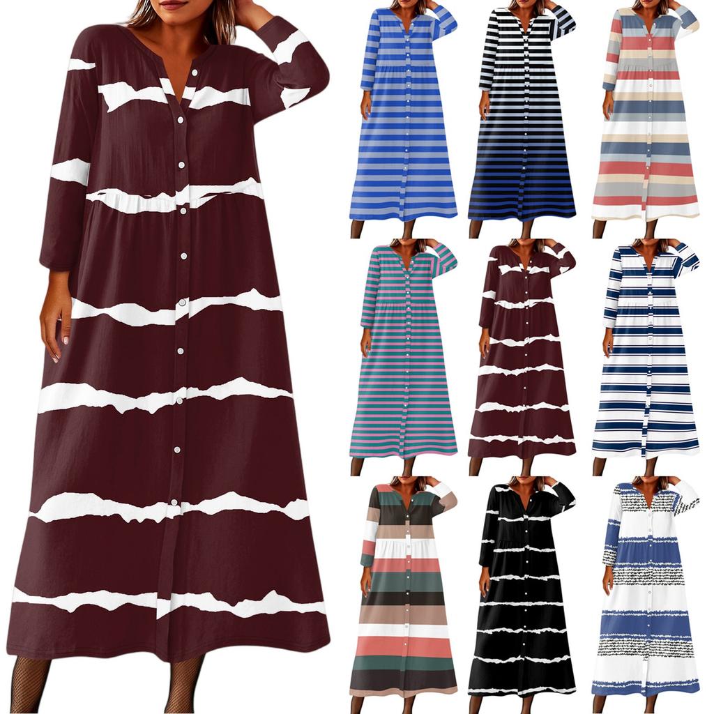 Damen Modisches Bedrucktes Rundhals Siebenviertelarm Knopf Lockeres Hemdkleid