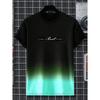 Kurzarm T-Shirt mit Alphabet-Print Lässige Wochenendkleidung für Männer und Teenager mit Farbverlauf Rundhals für Urlaubsresorts Frühling/Sommer/Herbst