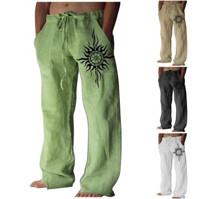 Lose, lässige, einfarbige Baumwoll-Leinen-Hose für Herren, elastische Krawatte, bedruckte gerade Hose