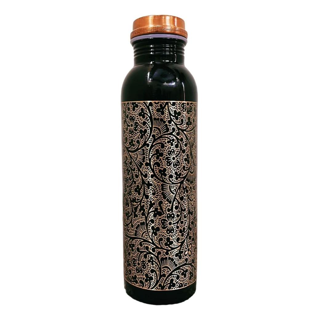 Designer-Wasserflasche aus Kupfer mit fortschrittlichem Auslaufschutz, Ayurveda- und Yoga-Gesundheitsvorteile. (1000ml, 1Einheit) Im Antik-Look