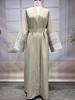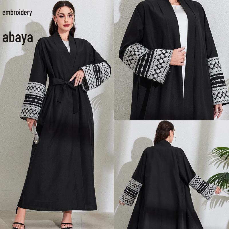 2025 Middle Eastern Muslim Fashion Embroidered Cardigan Dress with Belt and Pocket