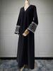 High-End Schwarzes Besticktes V-Ausschnitt Abaya Kleid