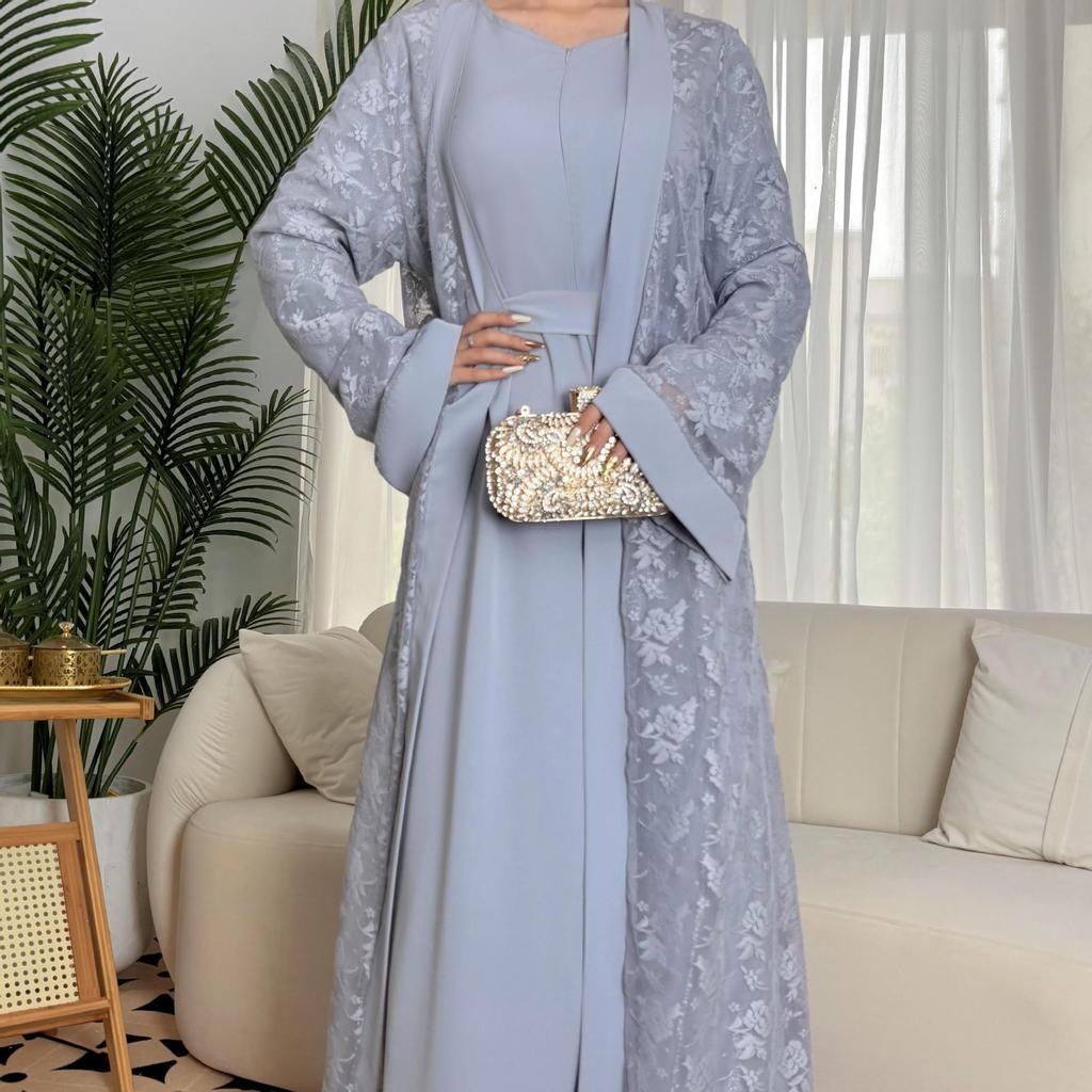Dieses elegante zweiteilige Kleid verfügt über ein traditionelles islamisches Design, wunderschön gefertigt mit filigranen Spitzendetails. Das Kleid aus hochwertigem Polyester bietet sowohl Strapazierfähigkeit als auch Komfort.. Das Ensemble besteht aus einem langärmligen Oberteil und einem passenden Rock, die Bescheidenheit nahtlos mit raffiniertem Stil verbinden.. Perfekt für besondere Anlässe oder den Alltag, verkörpert dieses Kleid Anmut und Tradition und macht es zu einer zeitlosen Ergänzung für jede Garderobe.