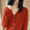 Autumn Winter Fashion Cardigan Women Sweater Knitted V-neck Long Sleeved Bottoming Shirt Solid Color Casual Simple Basic Tops Coats