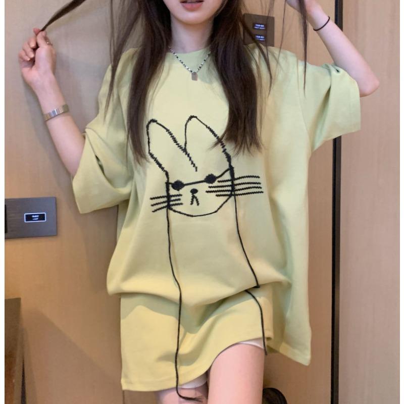 Sommermode Minimalistisch Altersreduzierend Rundhals Print Locker Lässig Einfarbig Vielseitig Oversize Kurzarm T-Shirt