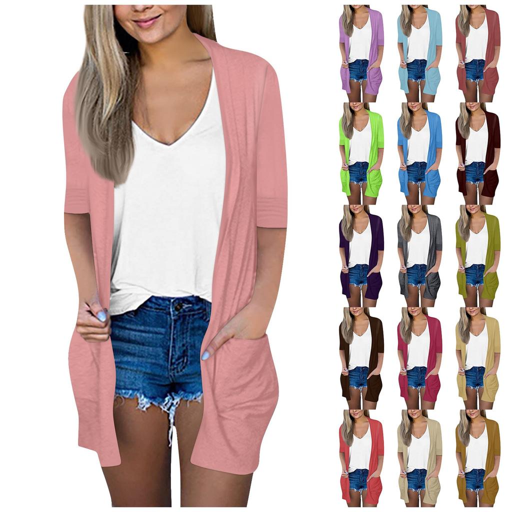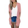 Damenmode, lockere, lässige Tasche, einfarbige Strickjacke, siebenteiliges Ärmel-Jackenoberteil
