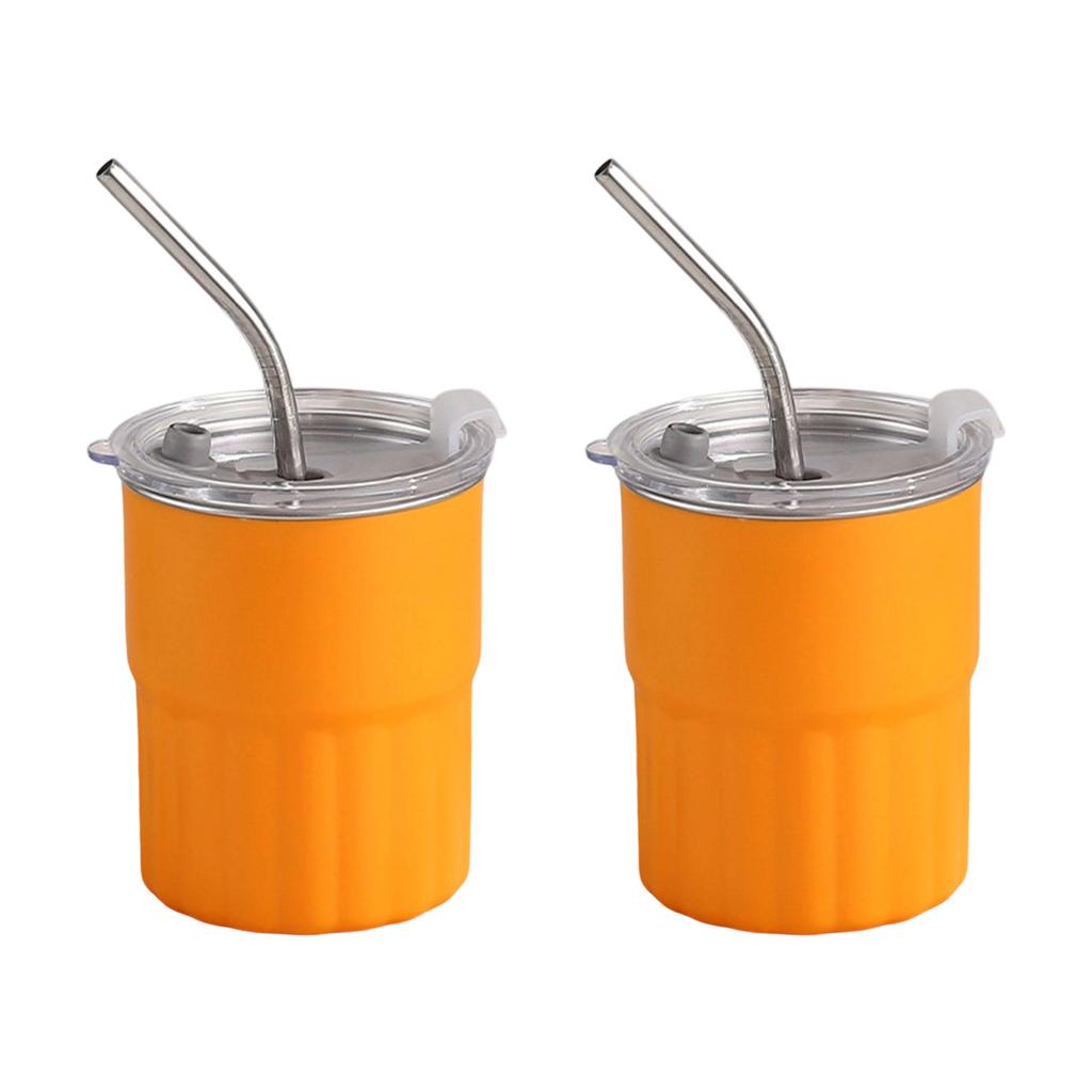 2 Stück Edelstahl Kaffeebecher Set Trinkgeschirr mit Strohhalm und Deckel Stapelbare doppelwandige Tasse für Camping und Outdoor