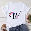 Neues Alphabet-Print Damen T-Shirt Frau Harajuku Kurzarm T-Shirts Shirt Blumen Buchstaben T-Shirt Mädchen Sommer T-Shirt Top Femme T-Shirt